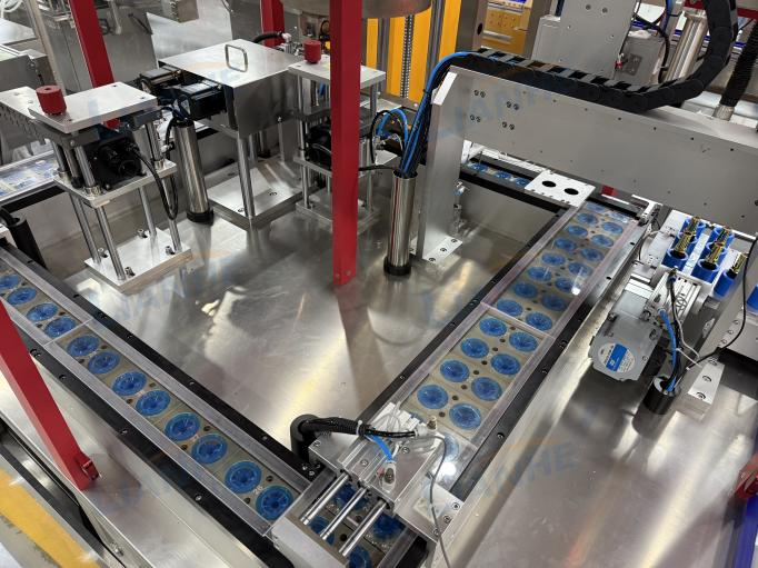 本設(shè)備應(yīng)用在化妝品彩妝系列的蠟基單位,主要適用于全硅膠口紅/唇膏產(chǎn)品,設(shè)備配備全自動(dòng)灌裝、制冷、預(yù)熱、恒溫、脫模、旋管及其他智能檢測、保護(hù)裝置等功能;操作簡、灌裝精準(zhǔn)、生產(chǎn)速度快、成品率高;料罐采用雙層加熱保濕設(shè)計(jì),配無刷電機(jī)攪拌,速度可調(diào)節(jié),外置獨(dú)立控制,可電動(dòng)升降加料及清洗非常方便。設(shè)備可快速按客戶樣品開模訂制各種產(chǎn)品。